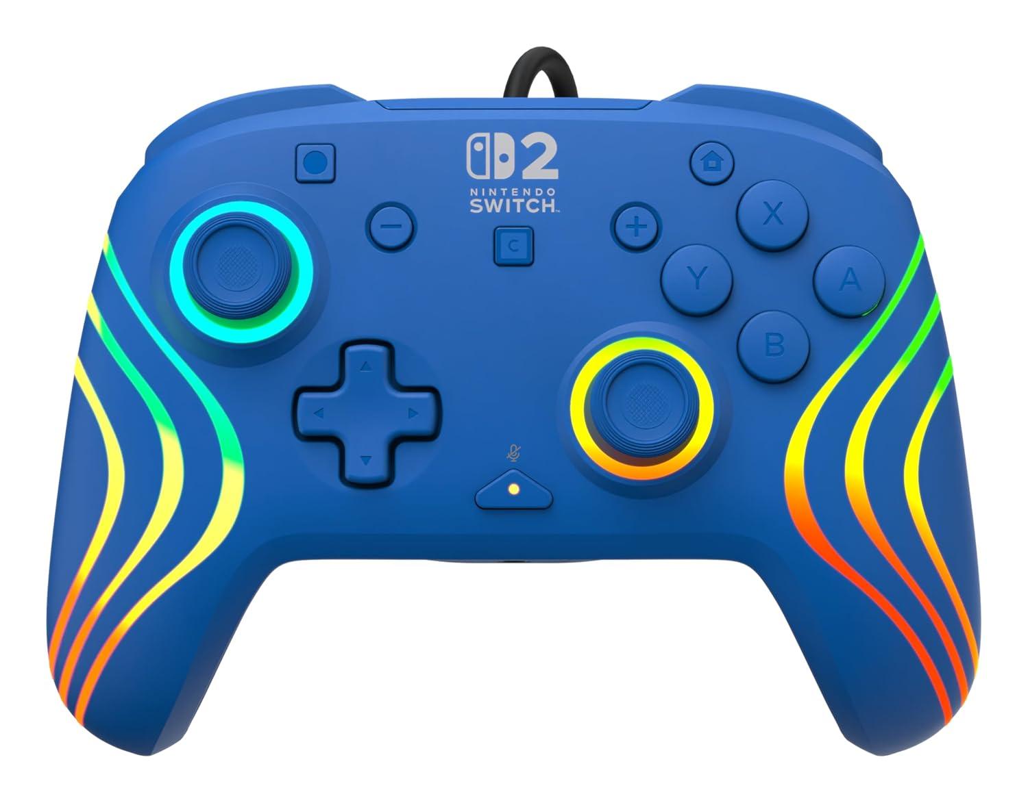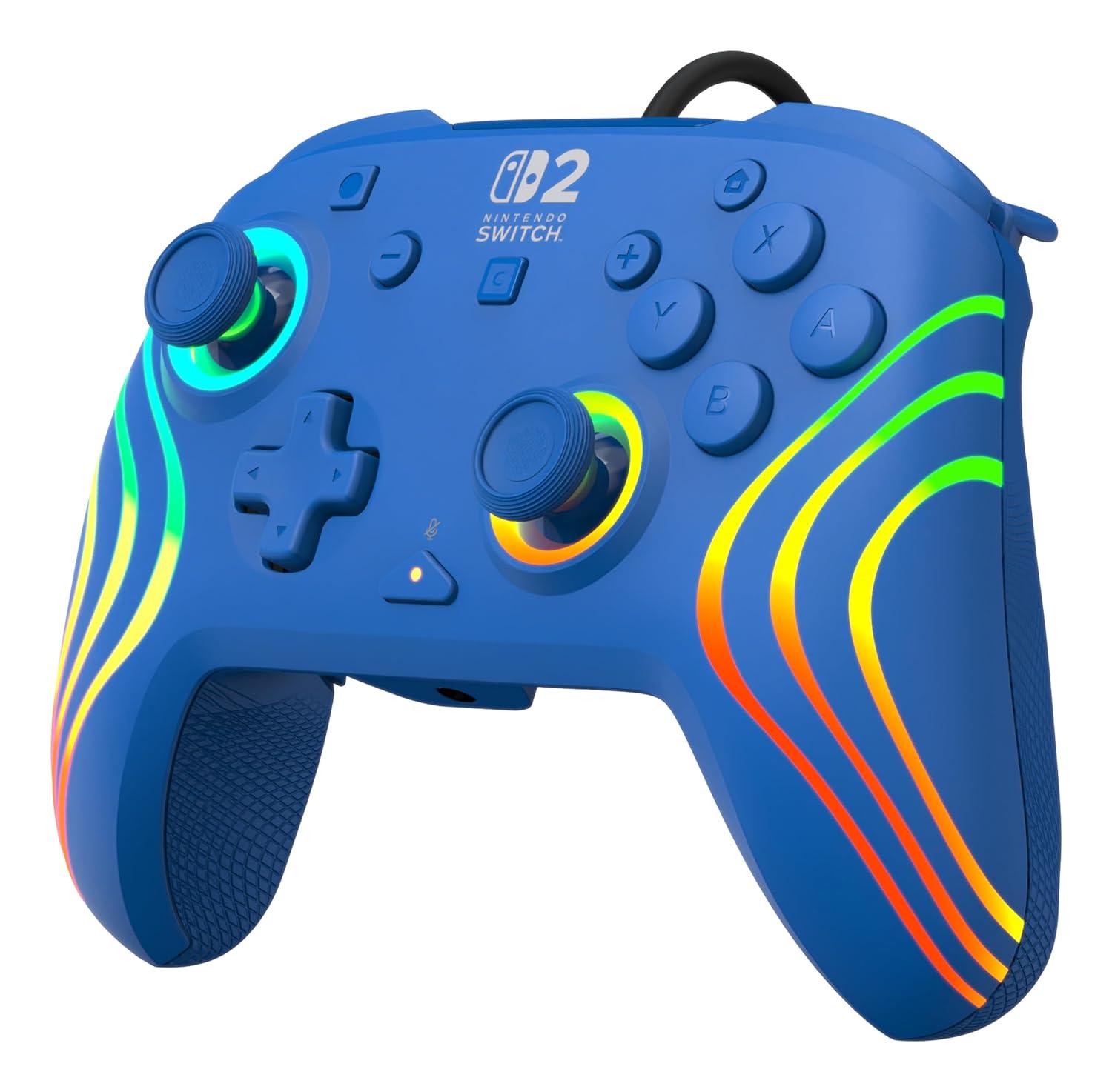 Turtle Beach Afterglow Wave Wired RGB Gaming Controller – Officially Licensed for Nintendo Switch 2, Nintendo Switch/Switch Lite/OLED – Hall-Effect Thumbsticks, Customizable Lighting – Blue(Blue)