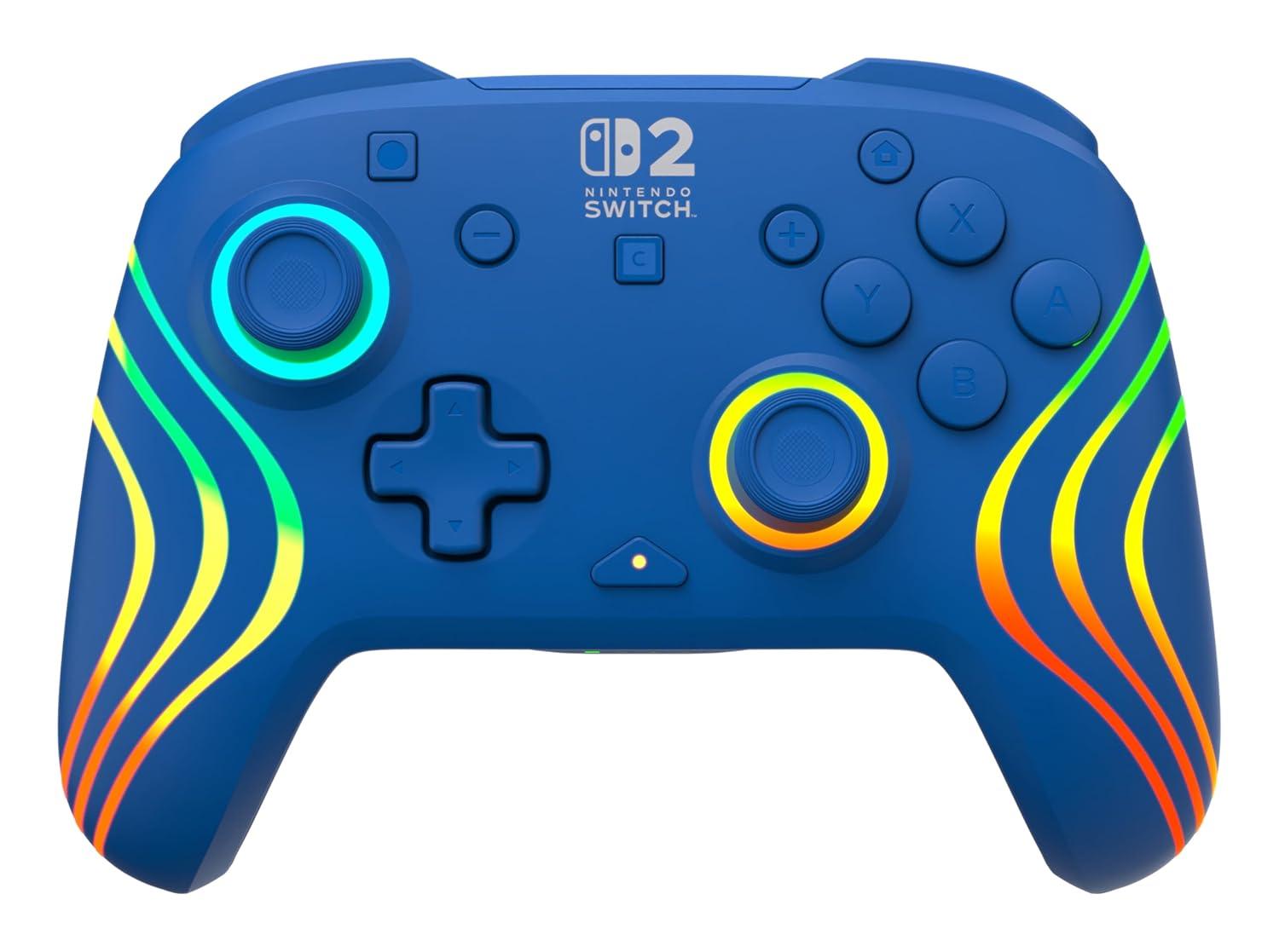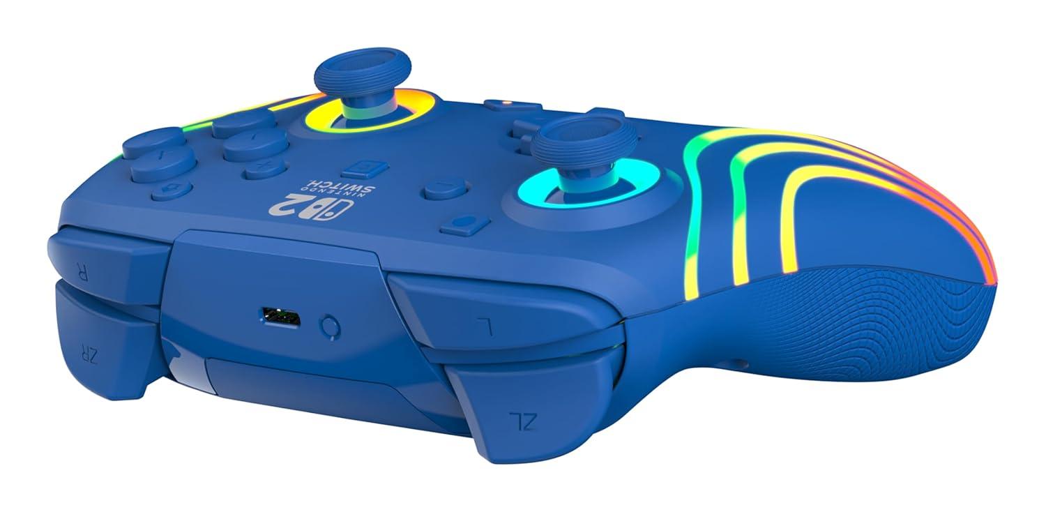 Brighten up your gaming experience with the Afterglow Wave Wireless RGB Gaming Controller for Nintendo Switch™ 2. This controller also works with Nintendo Switch™, Nintendo Switch™ Lite, and Nintendo Switch™ – OLED Model. Designed for players of all ages, this controller is perfect for those who want to add a burst of color and excitement to their gameplay. With eight fully customizable RGB LED lighting zones and four dazzling preset modes, you can create a look that matches your style, mood, or favorite game. Choose a soft ambient glow for a relaxed feel or unleash an electrifying wave of colors for a more dynamic effect.