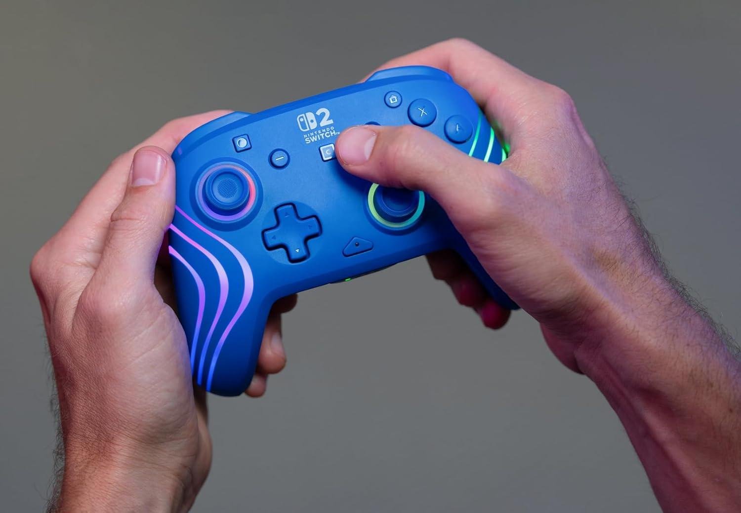 Turtle Beach Afterglow Wave Wireless RGB Gaming Controller – Officially Licensed for Nintendo Switch 2, Nintendo Switch/Switch Lite/OLED – TMR Thumbsticks, Customizable Lighting – Black(Blue)