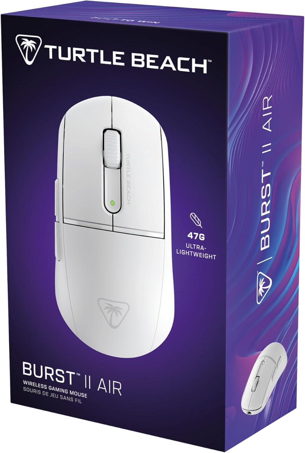 Turtle Beach Burst II Air Wireless Gaming Mouse – 47g Ultra Lightweight, Optical Switches, 26000 DPI Optical Sensor, 120-hour Rechargeable Battery, Symmetrical Design, Bluetooth, USB-C Cable – Black(White)
