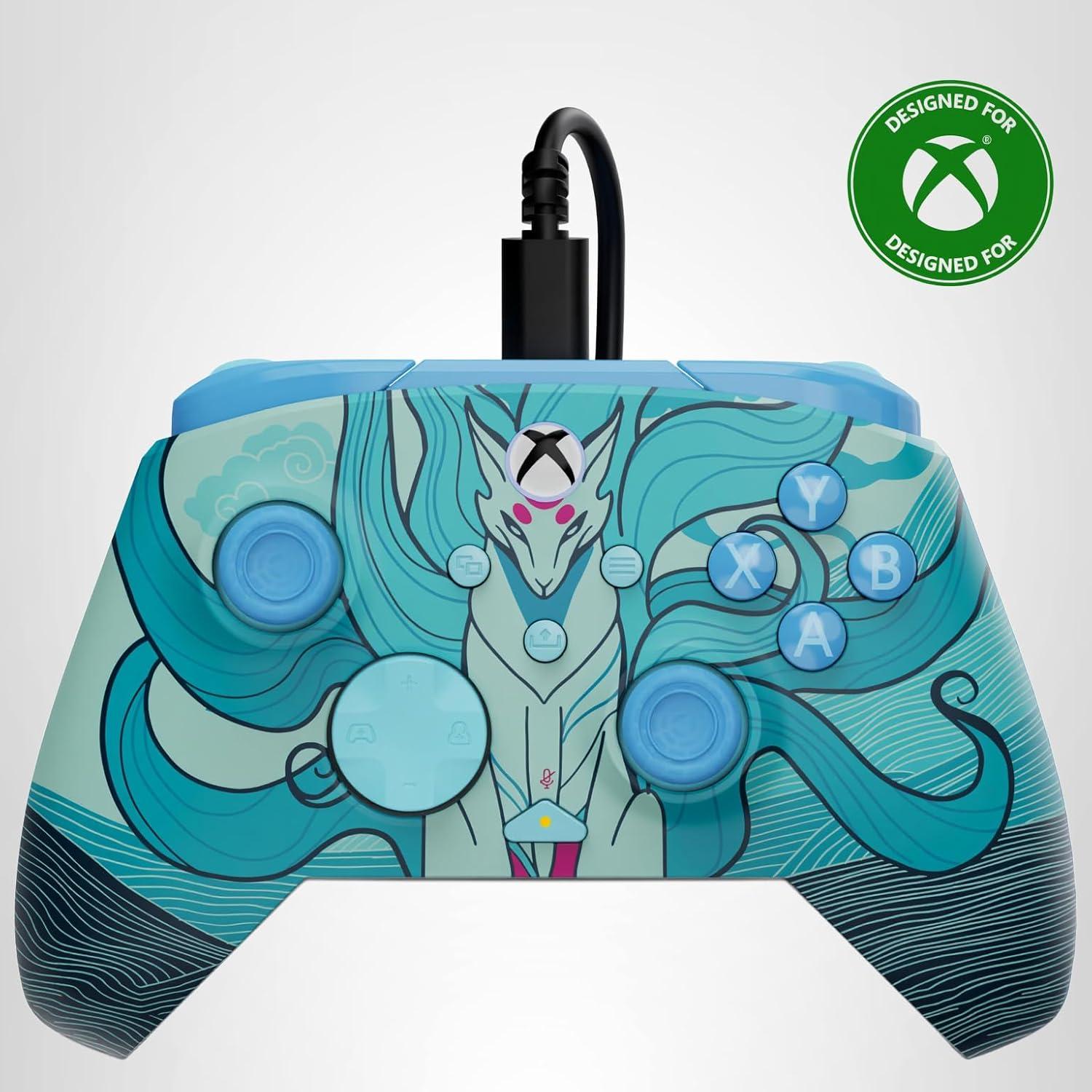 Turtle Beach Rematch Advanced Wired Gaming Controller Licensed for Xbox Series X|S, Xbox One, Windows PC – Glow, Remappable Buttons, Hair Triggers, Audio Controls, Impulse Triggers – Cherry Blossom(Blue Kitsune)